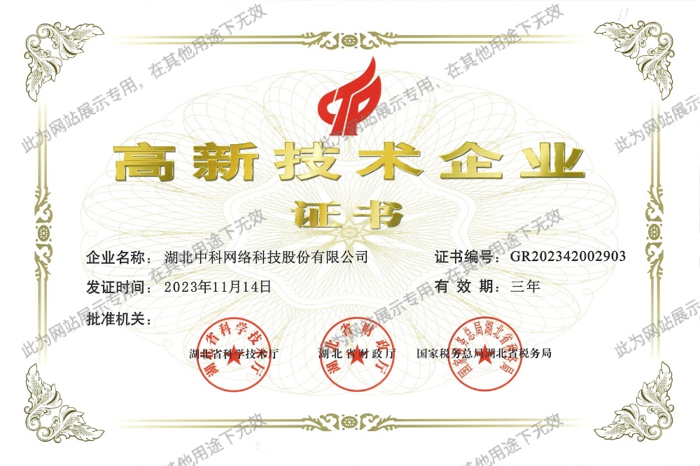 湖北中科網(wǎng)絡(luò)科技股份有限公司成立于1998年5月,注冊地為武漢市武昌區(qū),總部位于中國光谷。是智能化、信息化行業(yè)的領(lǐng)軍企業(yè),國家認定的高新技術(shù)企業(yè)、湖北省專精特新企業(yè)。